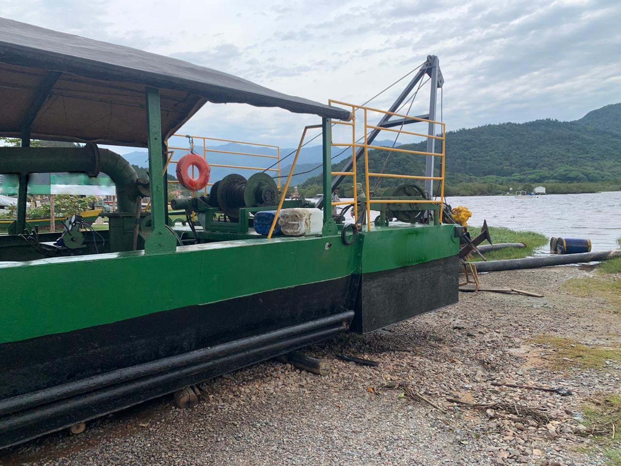 Sem ônusObs. Bomba de 12 polegadas tocada por motor scania 112, outro scania 112 na propulsao, caixa zf 5:1, cisterna com capacidade de 500 m3 ( 1 tonelada) Atualmente ela está puxada em seco para manutenção no casco, ela estava com lança de 16 metros de comprimento