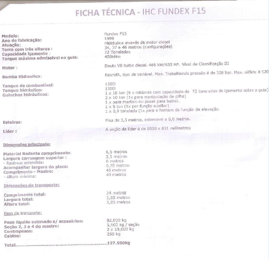 BATE-ESTACAS IHC FUNDEX F15 ANO 1999 – todo operacional