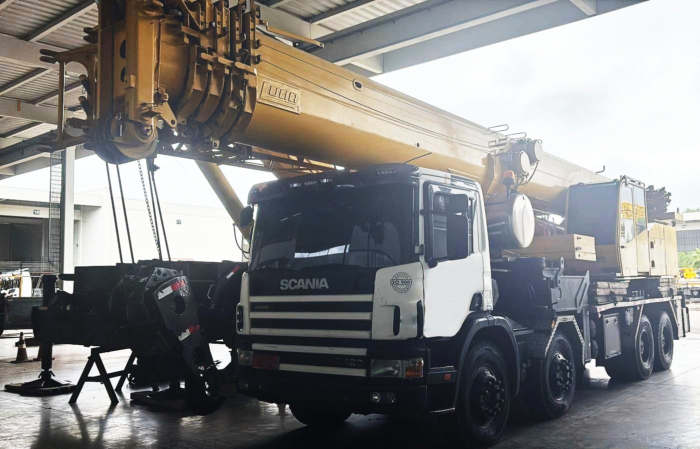 5 eixos; 10 pneus em bom estado; Peso do guindaste : 60 ton.