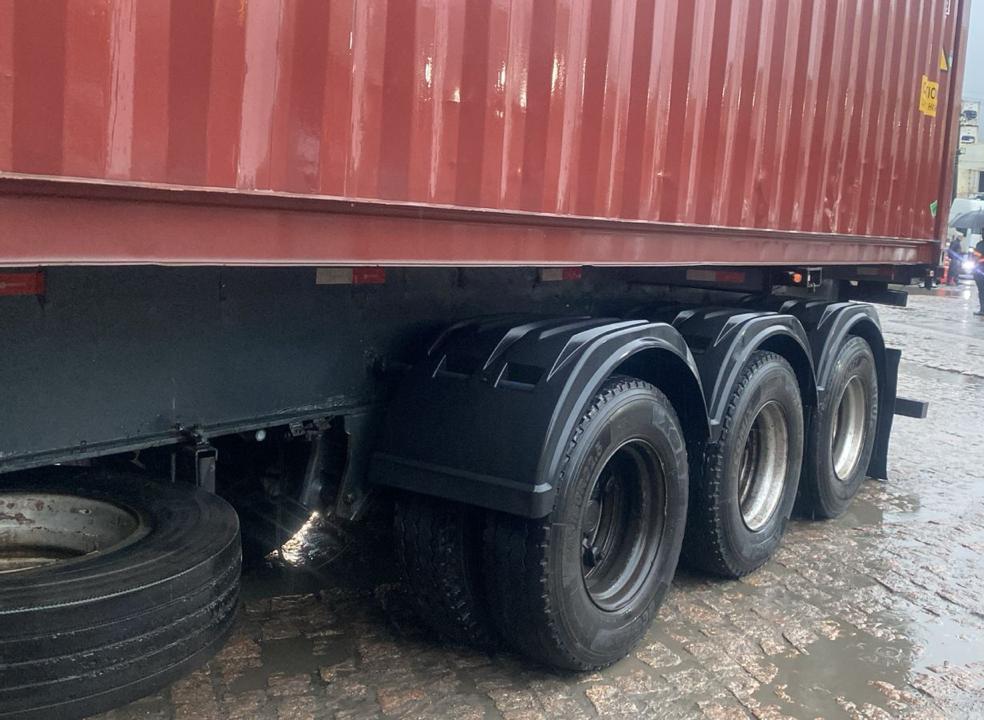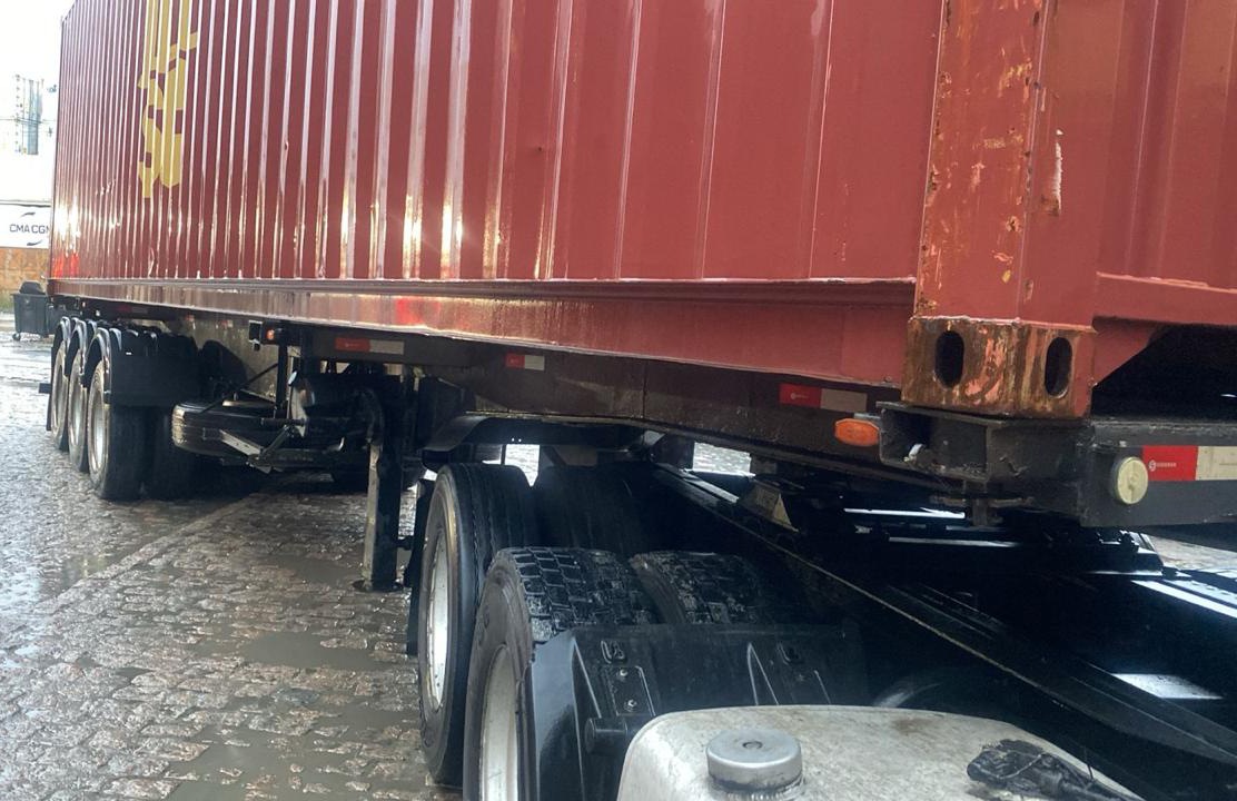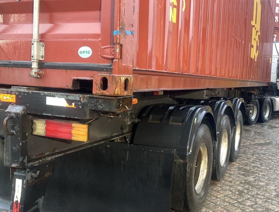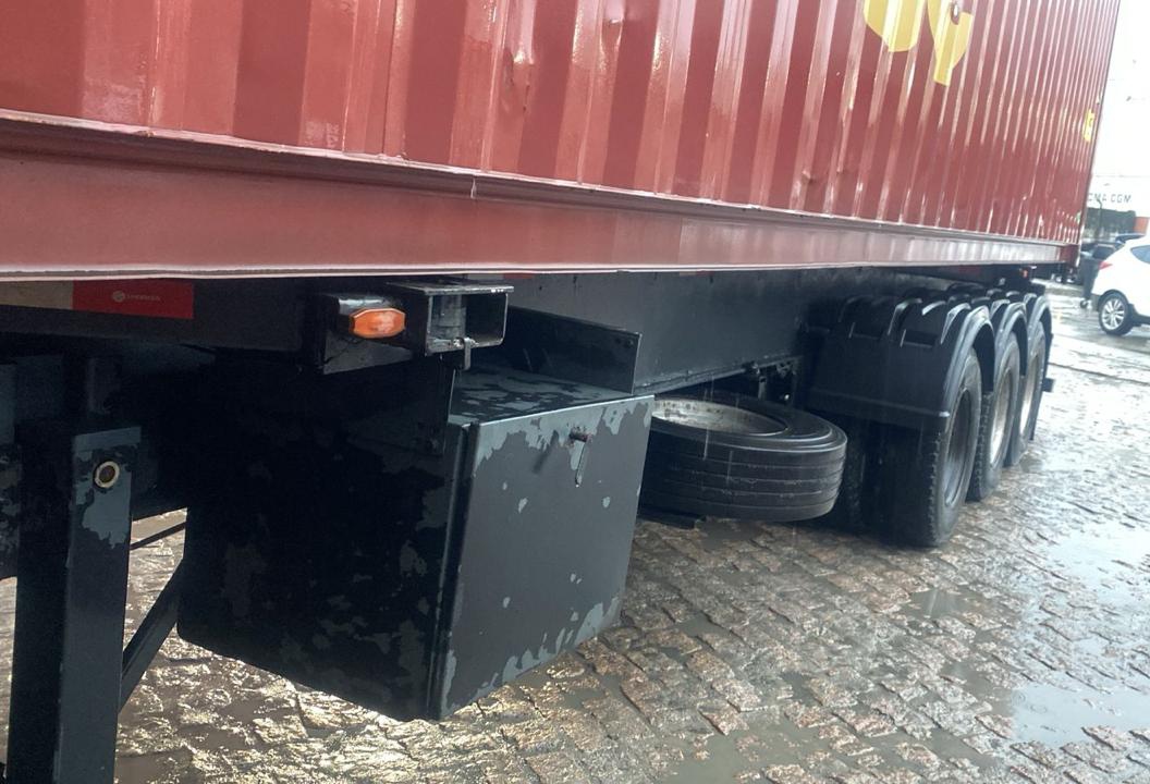 Com 3 eixos, extensiva, rebocando containers de 20/40/45 pés