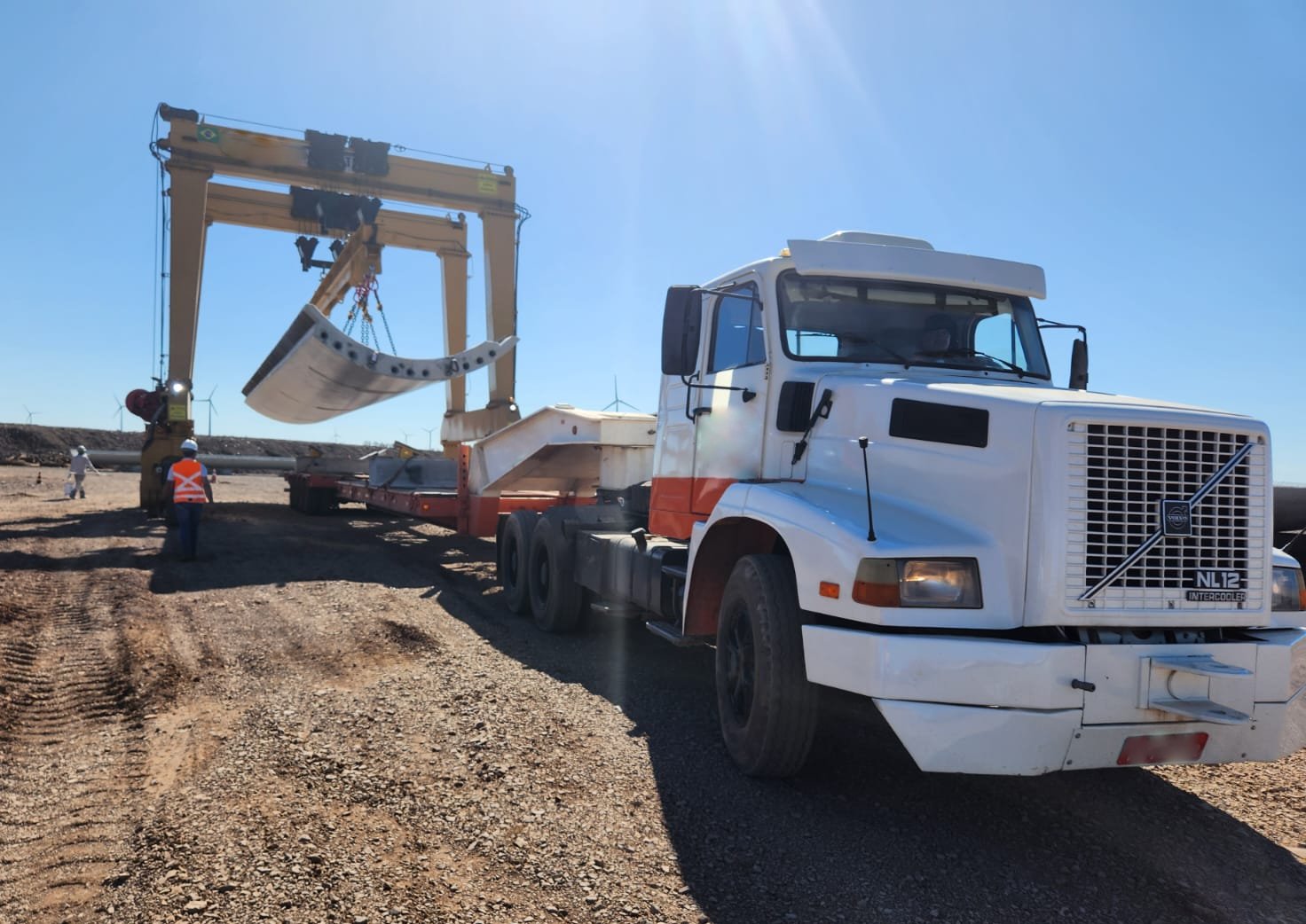 Movimentação de cargas em geral no setor de pré-moldados de concreto, materiais siderúrgicos, bobinas, chapas, vergalhões, etc.