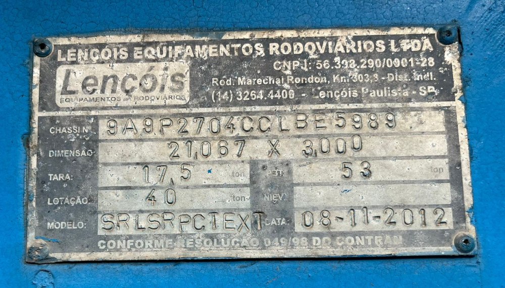 Instalado em carreta 3 eixos, com pneus novos, a pronta entrega no Brasil