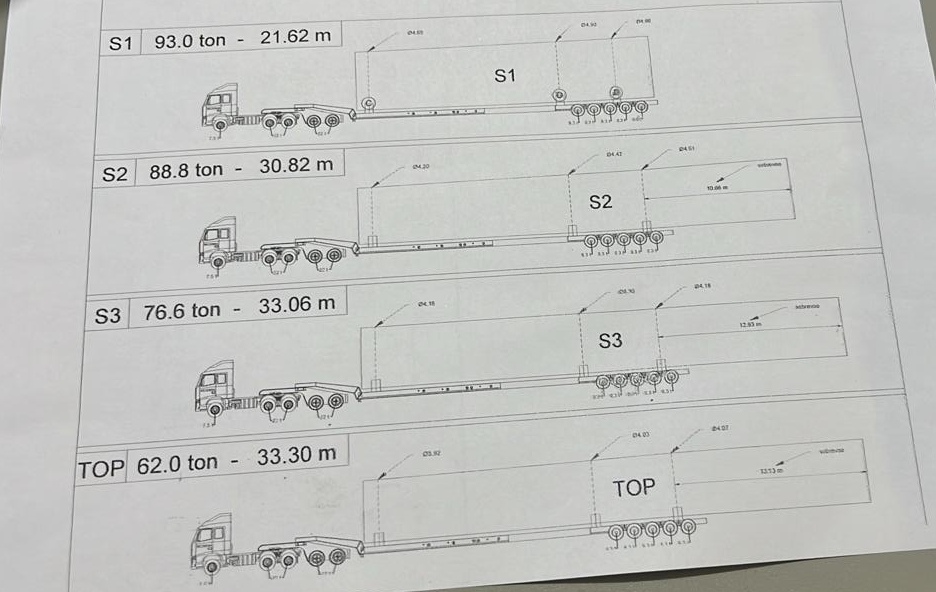 Transporta cargas/peças de até 140 ton.