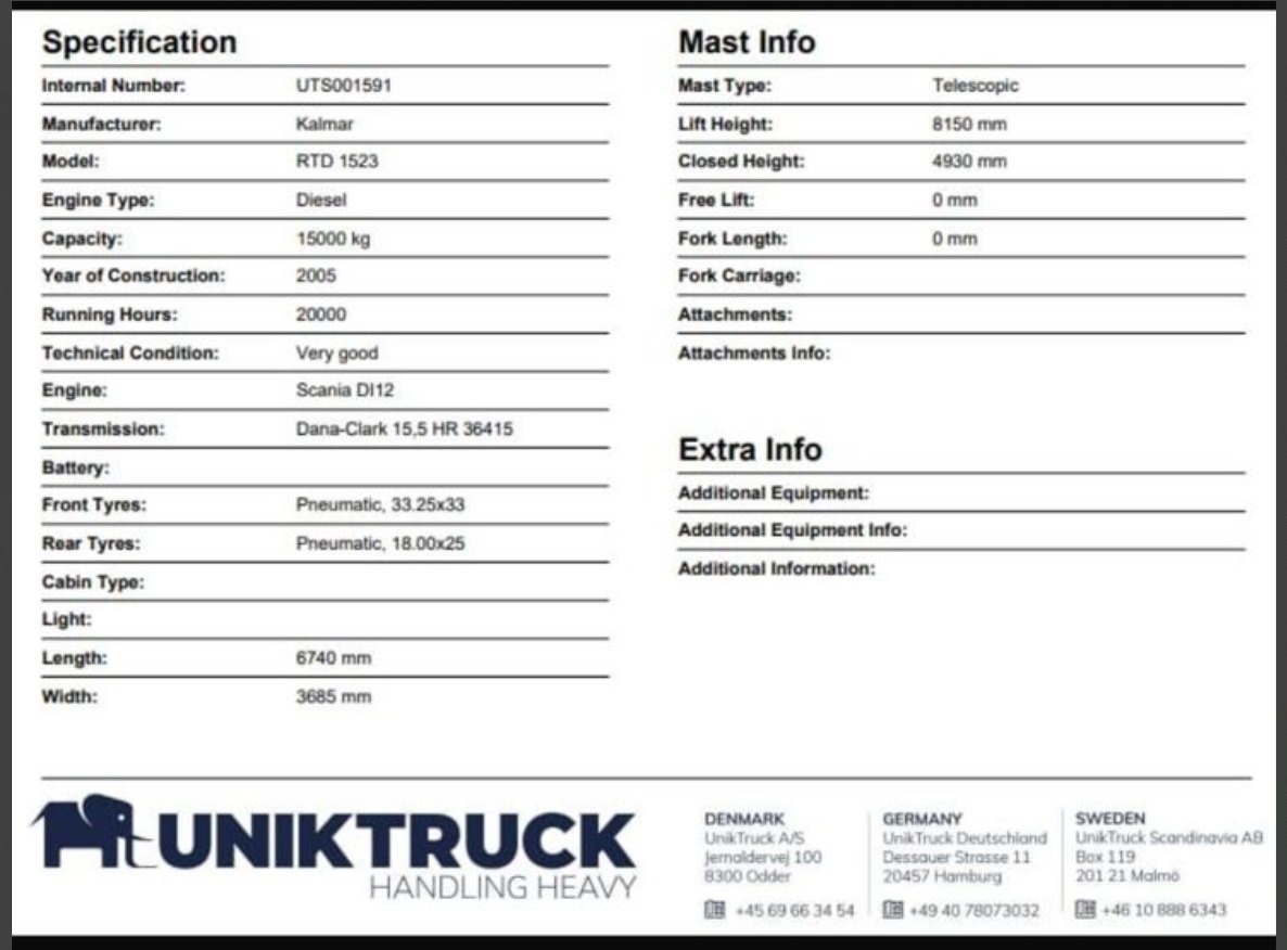 REACH STACKER KALMAR RTD1523 2015 15 TON. – FLORESTAL