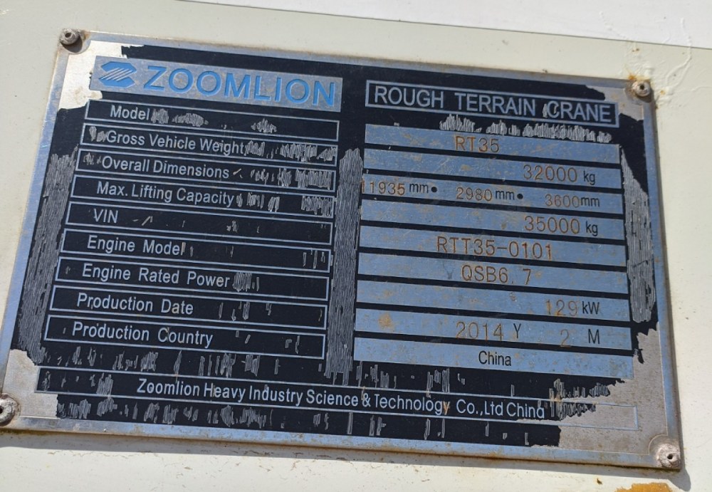 ZOOMLION RT35 2014 35 TON. – 2 UNIDADES