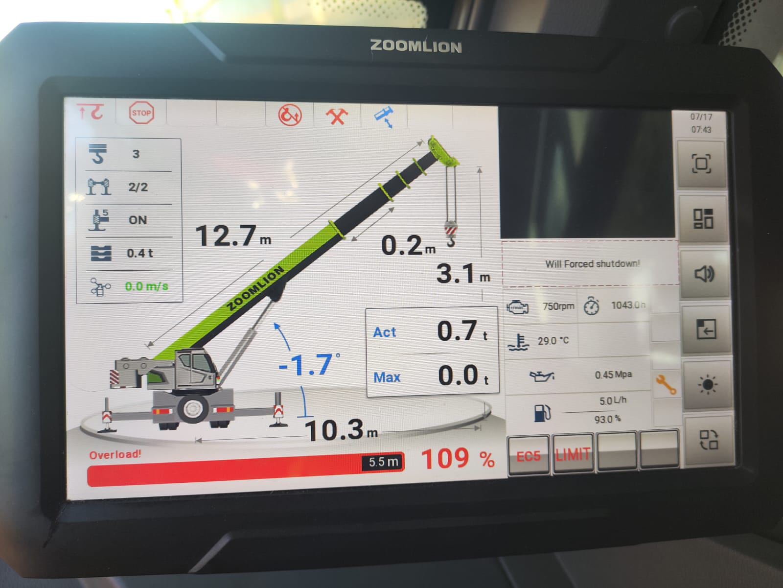 Essa máquina tem 5 eixos, e ela é a mesma que agora etá saindo como 150 ton. Por isso foi adesivada como ZTC150H de 150 ton.